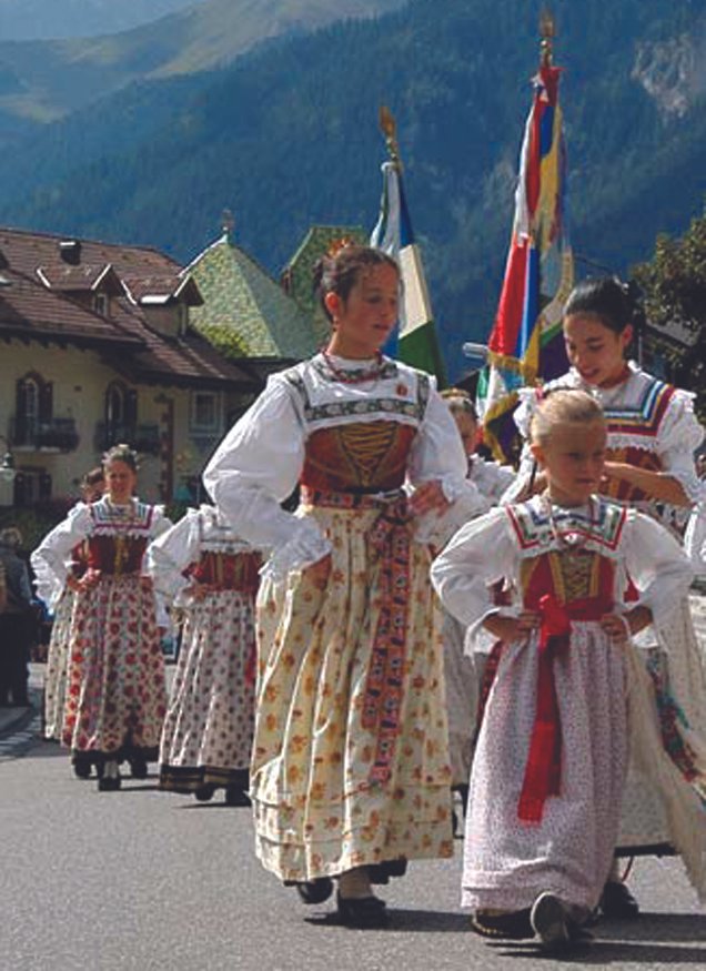 L guant a l’antica che sion usé a veder l’é chel del Grop da folclor, chel col gramièl da reses, da fiores de ogne sort, aboncont vèlch outa ence massa granes!