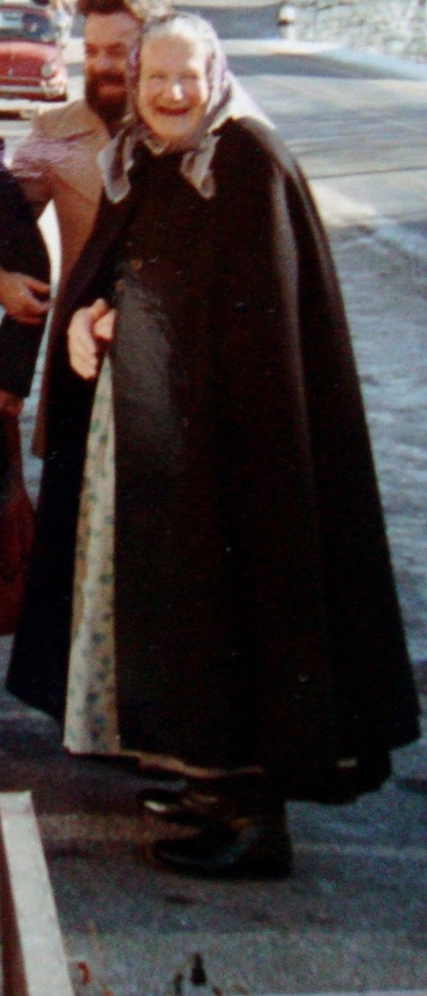 Se la mantela no ve sà bela o no podede ve la comprèr, podede durèr un bel scial gran, lench e lerch de lèna neigher o brun scur. (vedi foto)