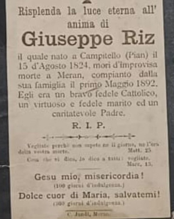 L senator Roland Riz l era de naa fasciana, soe reisc le é da Pian de Ciampedel, l sorainom de familia l é de Bous. É abù l’ocajion de l cognoscer, ence se bele demò per pec menuc. L era del 1971, ere envià a la noza de Erica Riz da Ciampedel e Erminio Casari, ló dal hotel Enrosadira de Ciampedel. En chel dì l é stat na recordanza di sudé todesć morc en vera ló dal Ossarie sun Pordoi endrezada da la Crousc Neigra Todescia e i Veteraner de Fascia, anter chisc l era ence i doi frades Rizzi de Pezol, patrogn del hotel Enrosadira. Entorn le doi domesdì via l é ruà Roland Riz, enlouta l era senator a Roma, l é vegnù a ge far i augures a Erica Riz che l era na soa parenta da dalonc. Saon defat che l besaf de Roland, Giuseppe Riz l é nasciù del 1824 a Pian de Ciampedel e l é mort a Maran del 1892. A Maran stajea ence l giaf de Roland, Silvestro (1850-1915) che l fajea l depenjador. L pare enveze, de inom Joseph, l aea studià da avocat, l aea maridà Ida Messner del 1915, i à abù cater fies, anter chisc Roland nasciù del 1927.